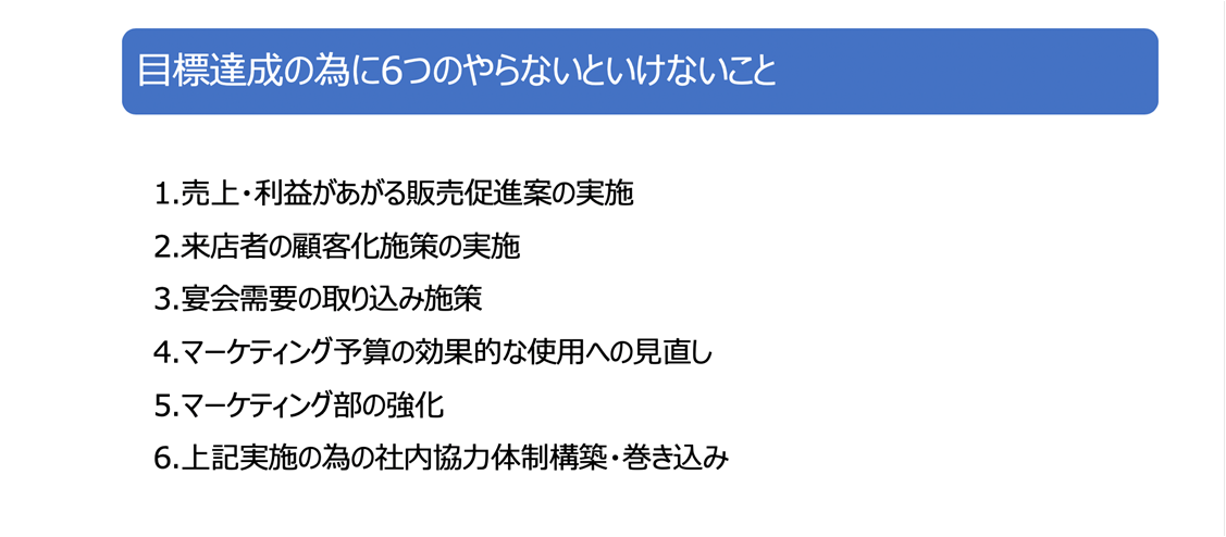 の時間をいただき、マーケティング予算の最適配分、社内データ分析から施策立案、必要組織の方針ができました。